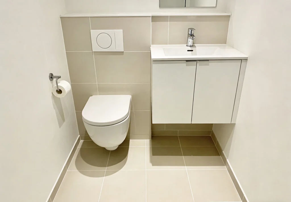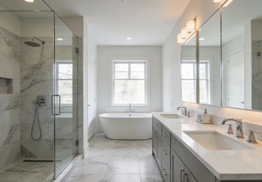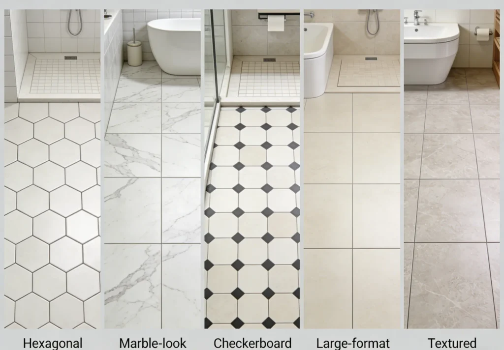Large-Format Tiles: 12×24-inch or bigger tiles reduce grout lines (easier to clean) and make small bathrooms feel more spacious.