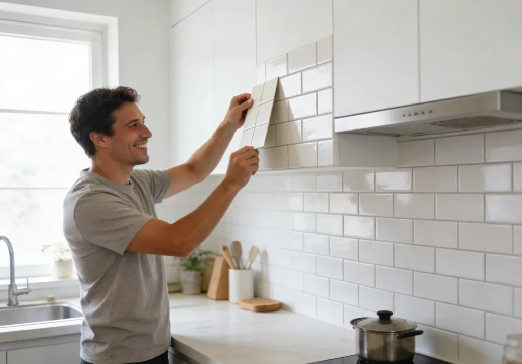 A peel and stick backsplash is a self-adhesive vinyl or gel-based product designed to mimic the look and feel of real tile. High-quality versions come with 3D textures that feel like stone or ceramic. The application process is straightforward: measure, cut, peel off the backing, and stick it to your existing wall. It is the perfect solution for covering up outdated floral patterns or protecting painted walls from sink splashes.