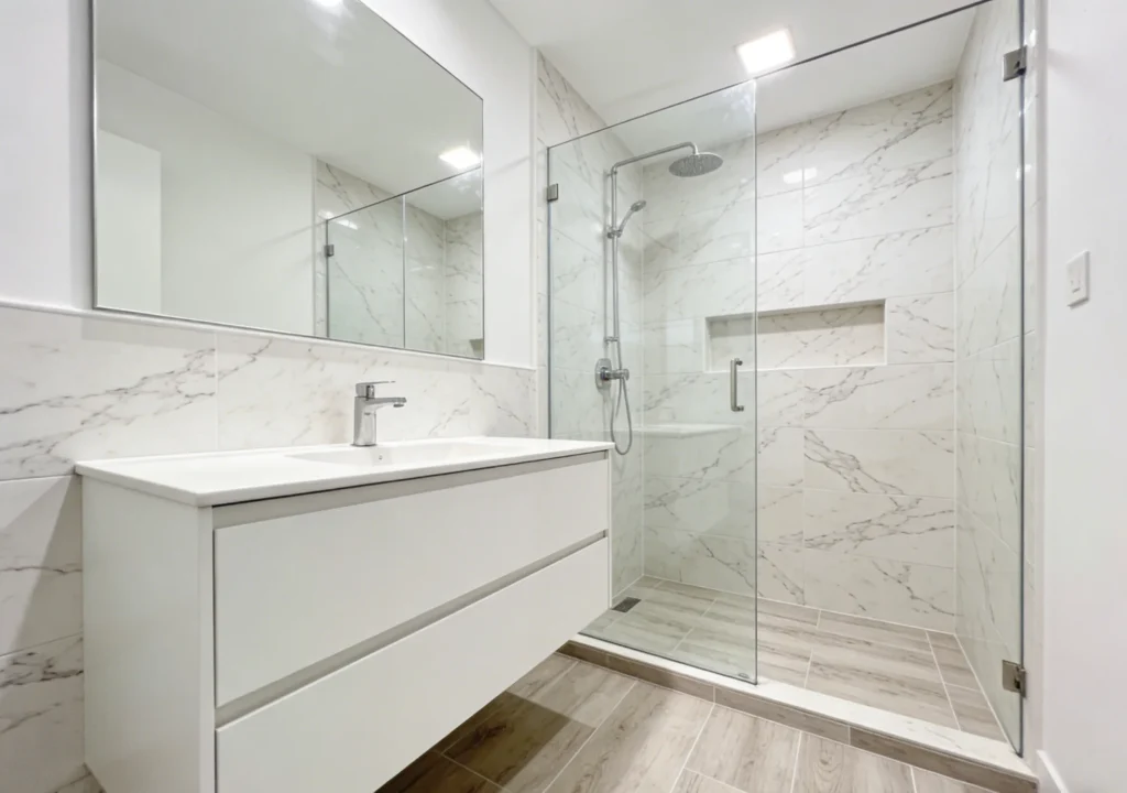 Bathroom Floors/Walls: 100% waterproof (especially LVT) – safe for shower surrounds and bathroom floors, preventing mold and water damage without extra sealing.