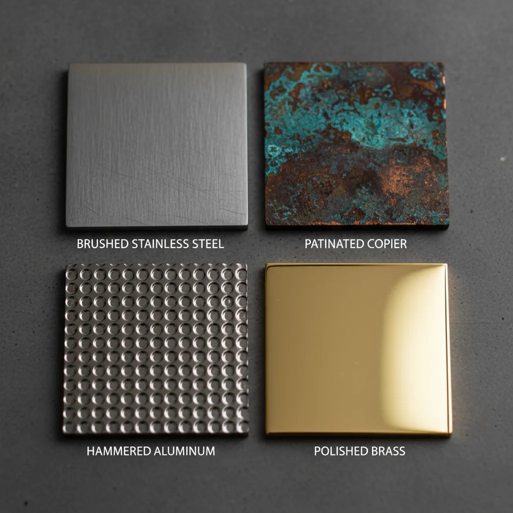 Finish: Polished (high-shine, reflective—brightens dark spaces); Brushed (matte, hides fingerprints—practical for kitchens); Hammered (textured, rustic-industrial—adds depth to accent walls).