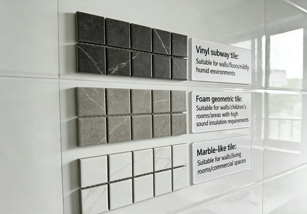 Material: Vinyl tiles are water-resistant (great for kitchens/bathrooms); foam tiles add texture but are less durable.
