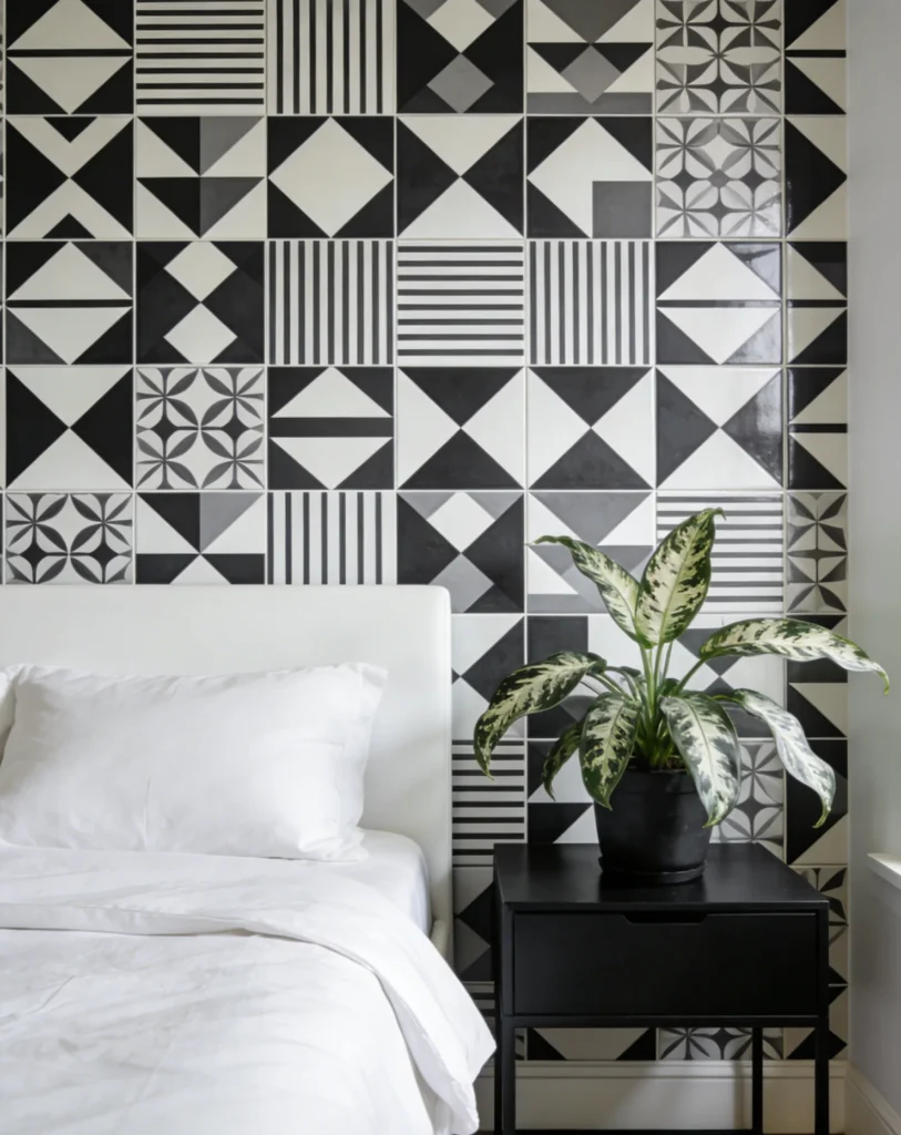 Accent Walls: Create focal points in bedrooms or living rooms with bold patterns (e.g., geometric, marble-look).