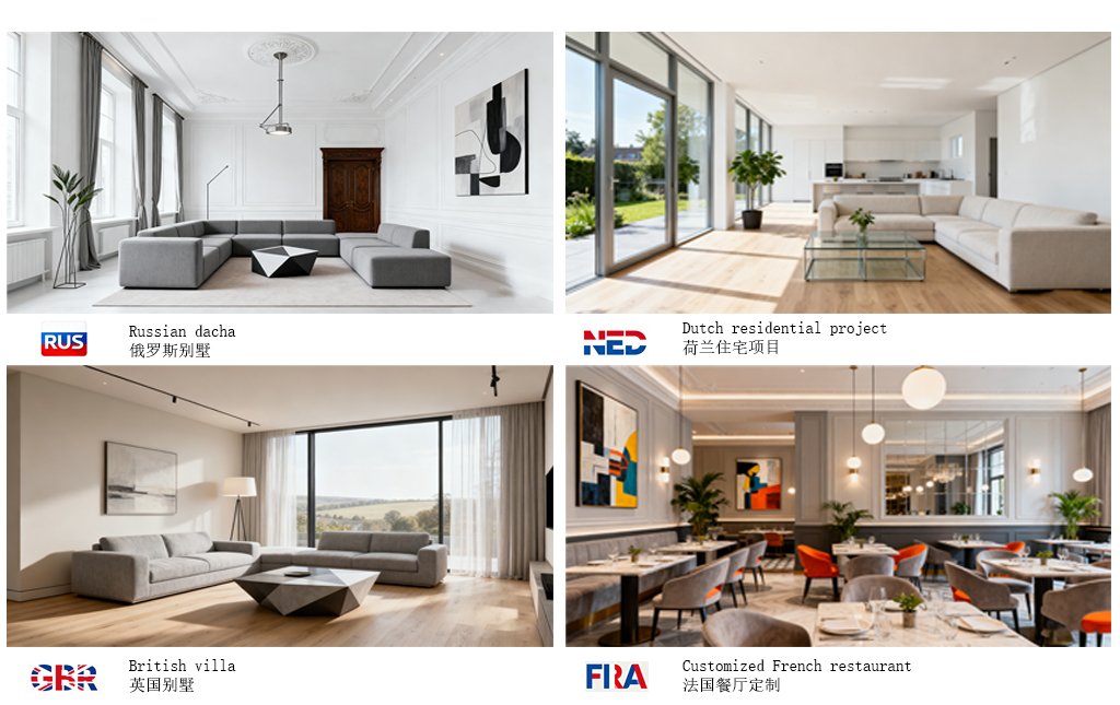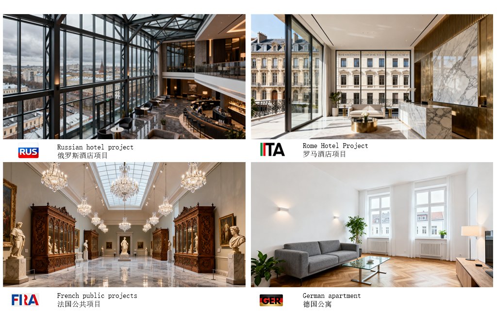 We offer full-chain services (design-construction-maintenance), innovative eco-friendlymaterials (zero-carbon cement/self-healing tiles, etc.), and cost-effectiveness (15%-20%lower than European brands at equivalent quality.